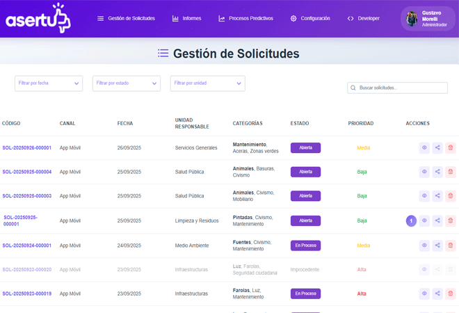 Durante la demostración, nuestro equipo le mostrará cómo la plataforma centraliza solicitudes, automatiza tareas repetitivas y convierte los datos en decisiones inteligentes.